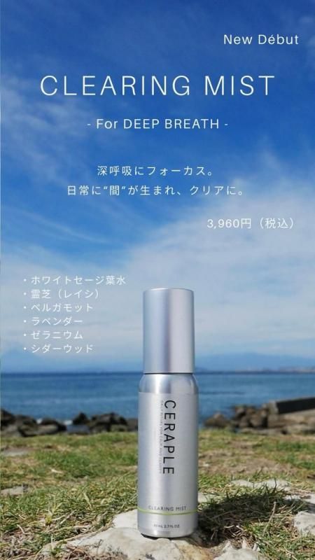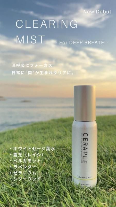 日々の心地よさと豊さを届けます。呼吸をすることにフォーカスした新アイテム「クリアリングミスト」。ホワイトセージ、霊芝、ベルガモット、ラベンダー、ゼラニウム、シダーウッドの香りで心と空間をクリアに。肌だけではなく、心と身体、そして日々のくらしの習慣がリチュアルとなり、自分を大切にする時間に。